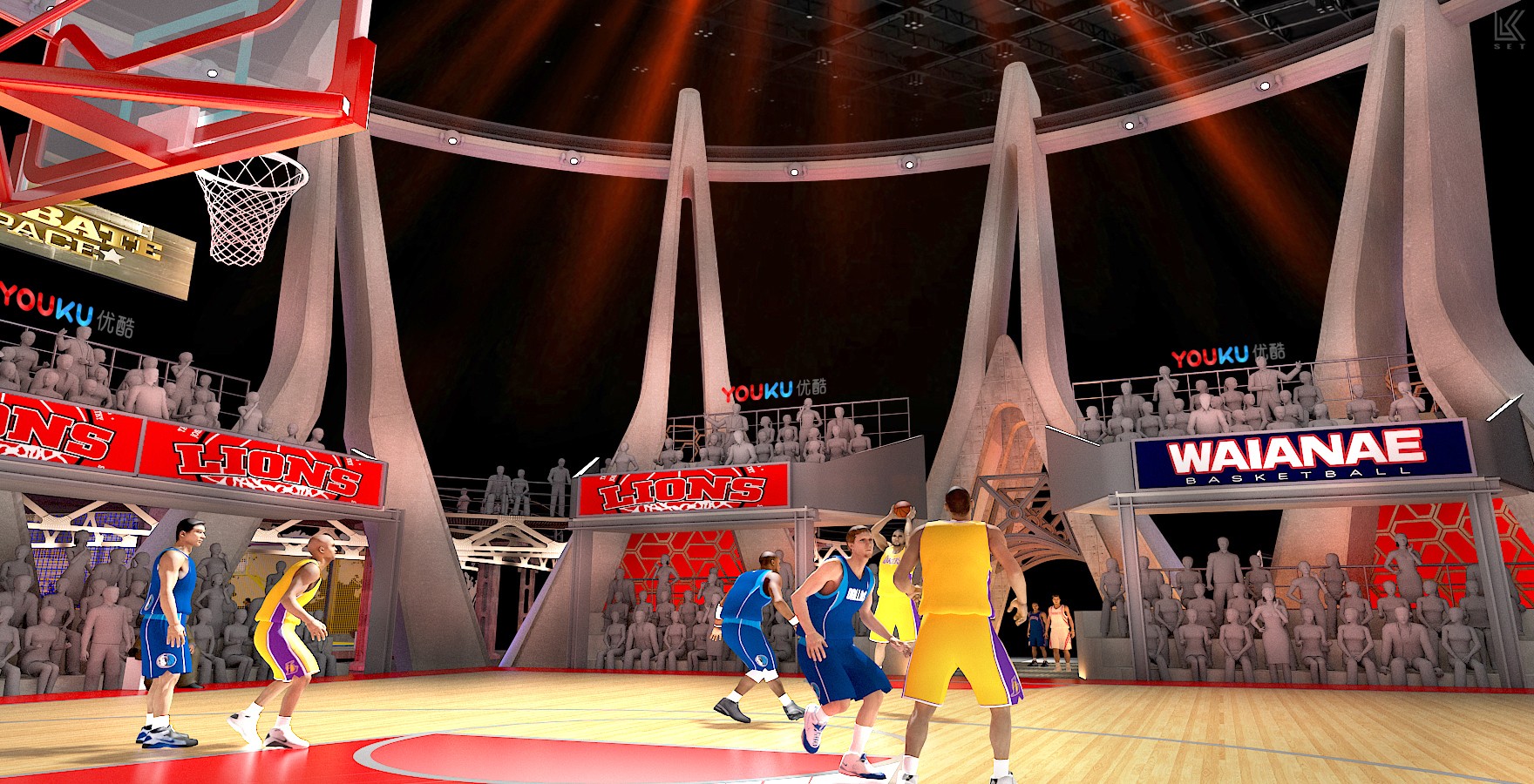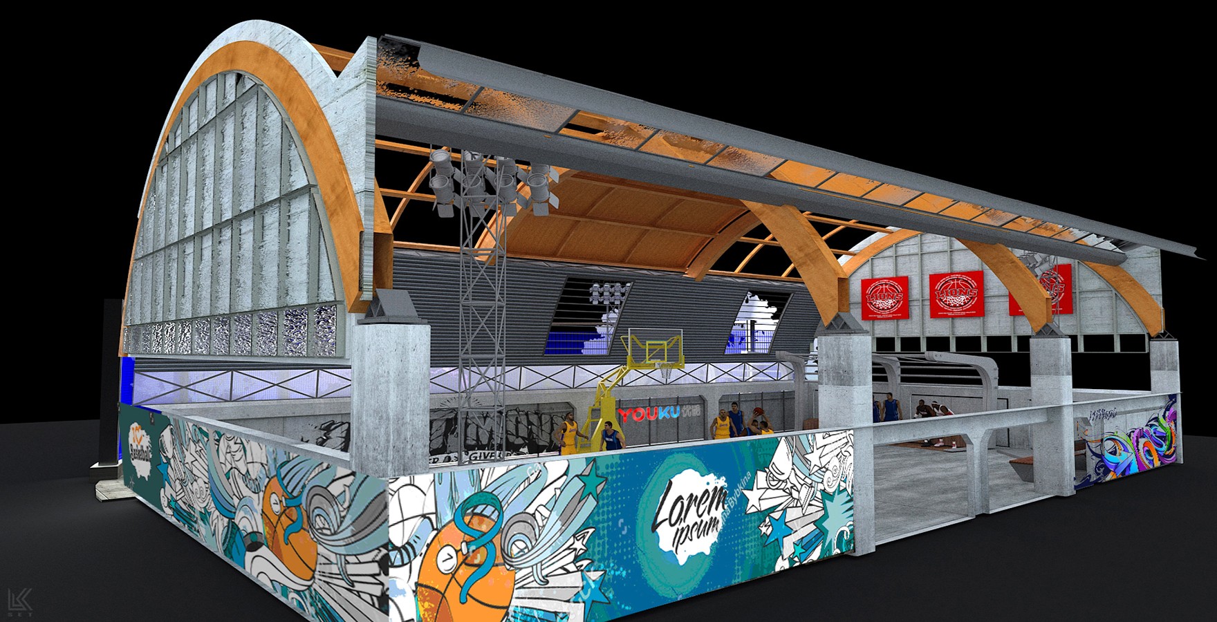 For the first season of 'Dunk of China,' I designed an authentic, immersive street basketball park that captured the raw charm of the sport. This iconic visual identity was instrumental in the show's historic format sale to Fox Network Group, marking the first time a major U.S. network had acquired an original Chinese variety show format.