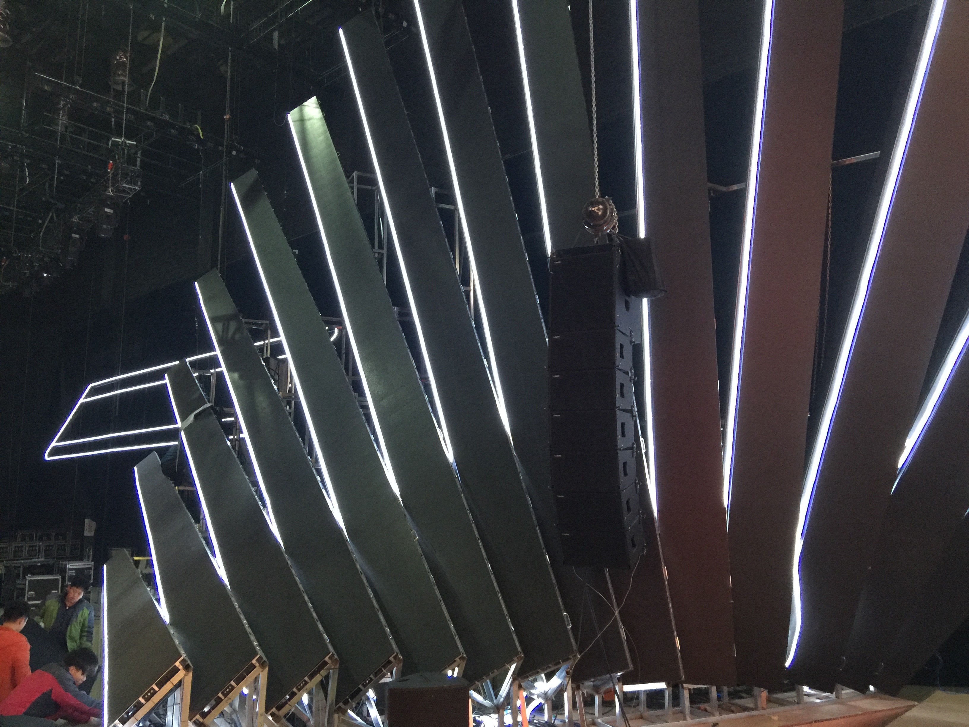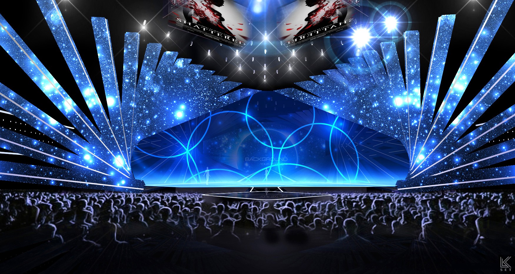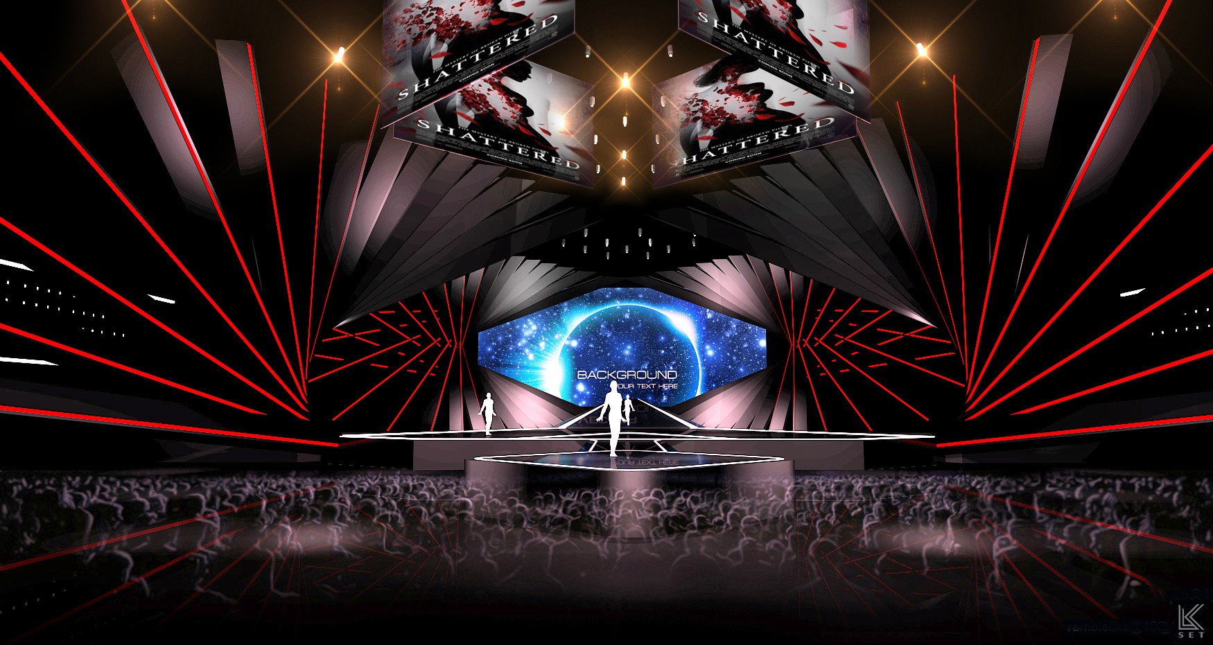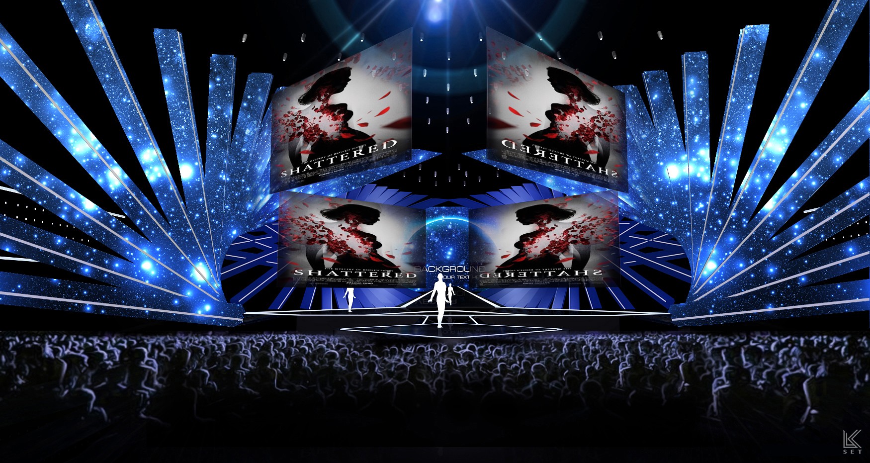 Inspired by the "frame" and "timeline" of digital film, the design abandons the concept of a traditional screen in favor of an architectural, linear composition. The entire space is composed of multi-layered, staggered LED video strips. This structure breaks the constraints of a single screen, allowing visual content to flow freely in a fragmented, multi-threaded manner. The audience is completely enveloped by the light and imagery of this multi-layered space.