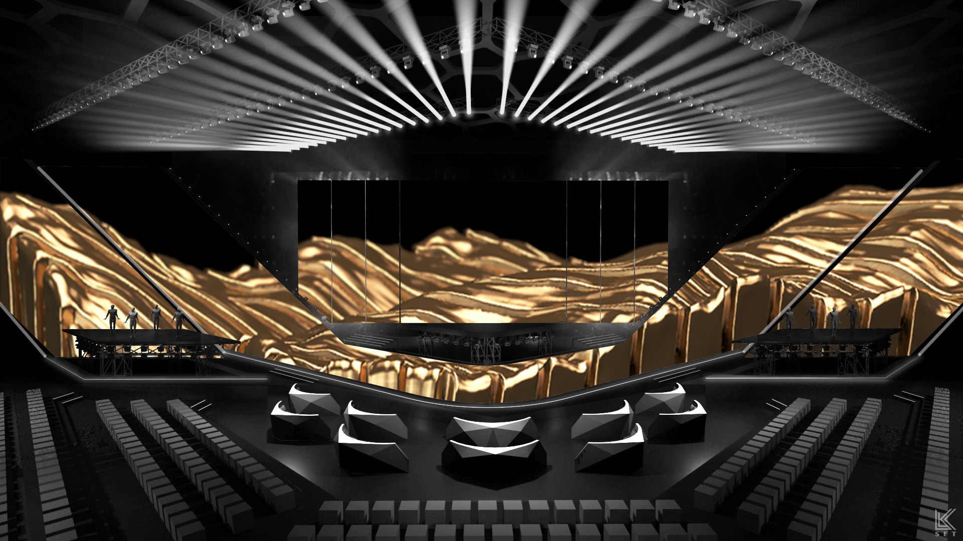 For Sina Weibo's ten-year milestone, I transformed the platform's most recognizable symbol of influence—the golden "V"—into the grand architectural form of the gala stage. It was more than a stage; it was a visualized temple of influence built for this top-tier social media event.