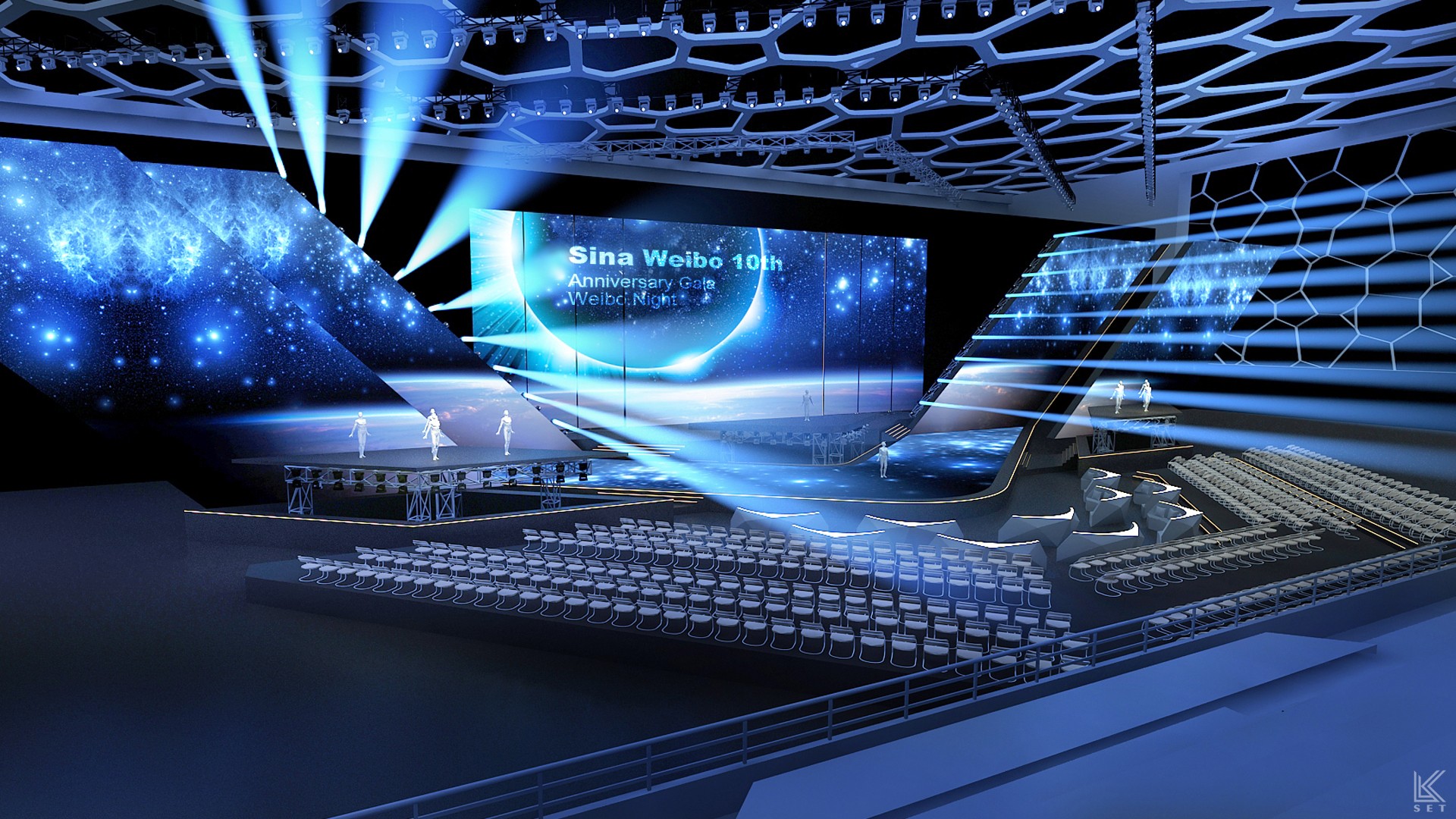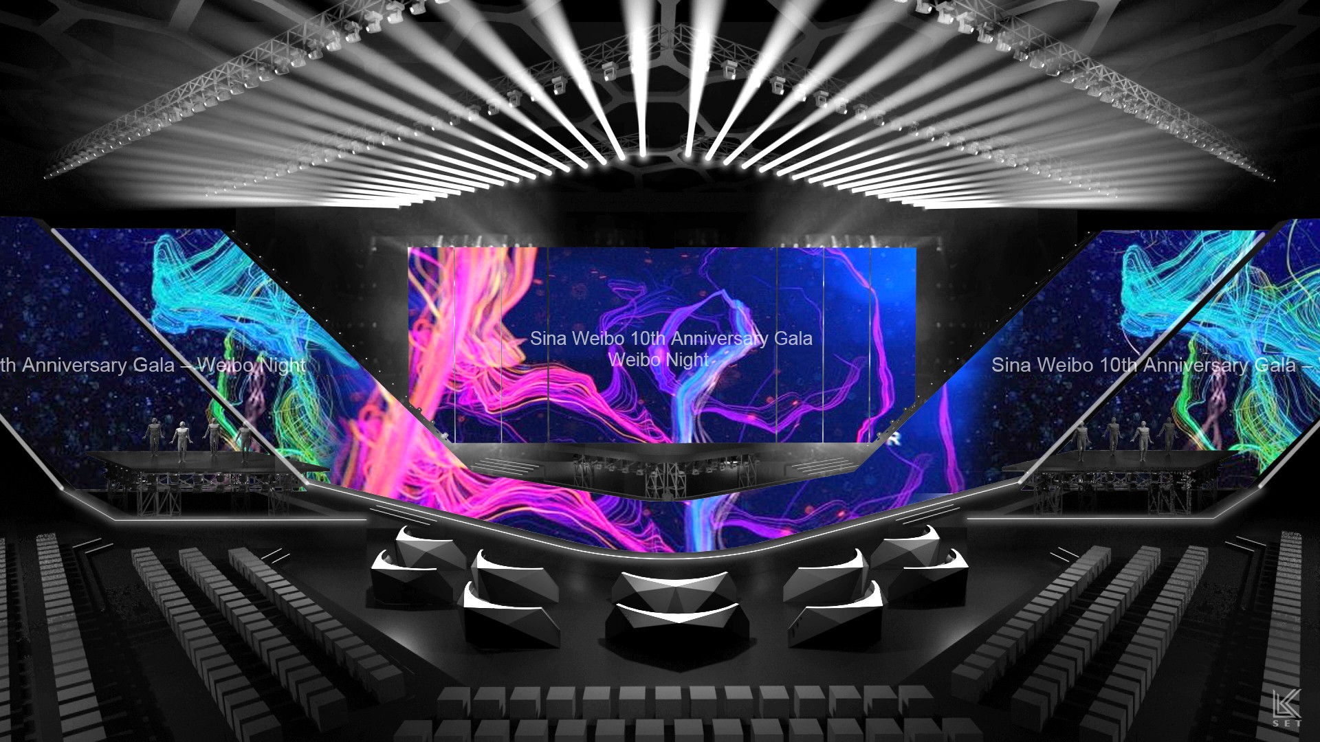 The main stage design for Sina Weibo’s 10th anniversary centers on the iconic “Big V” element, symbolizing authority, influence, and connection. The three-dimensional “V” structure not only reflects Weibo’s status as a leading social media platform with verified credibility but also represents the close interaction and shared success between Weibo and its hundreds of millions of users over the past decade.