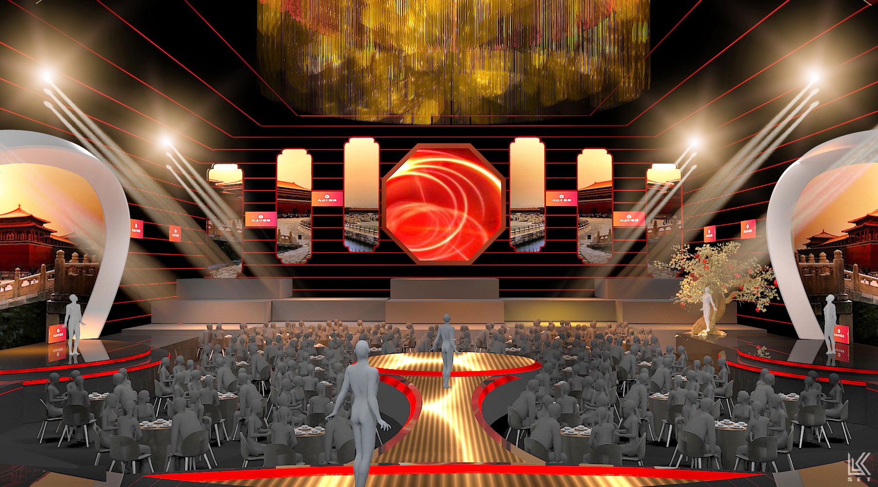 To bring this concept to life, we created a 360-degree, in-the-round stage, inviting the entire audience to a boundary-less celebration of togetherness. The integration of kinetic mechanics and AR technology seamlessly merged traditional motifs with futuristic technology, ultimately presenting an Eastern aesthetic space that carries the memory of Beijing while looking forward to the future of a new era.